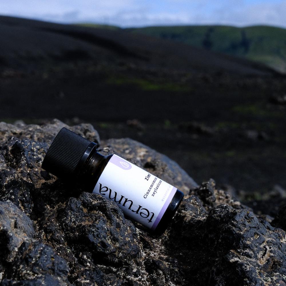 Wärmende Wintermassage: Nutze 2 Tropfen teruma ätherisches Zimtöl in 15 ml Massageöl, um bei kaltem Wetter Wärme zu spenden und die Durchblutung zu fördern.